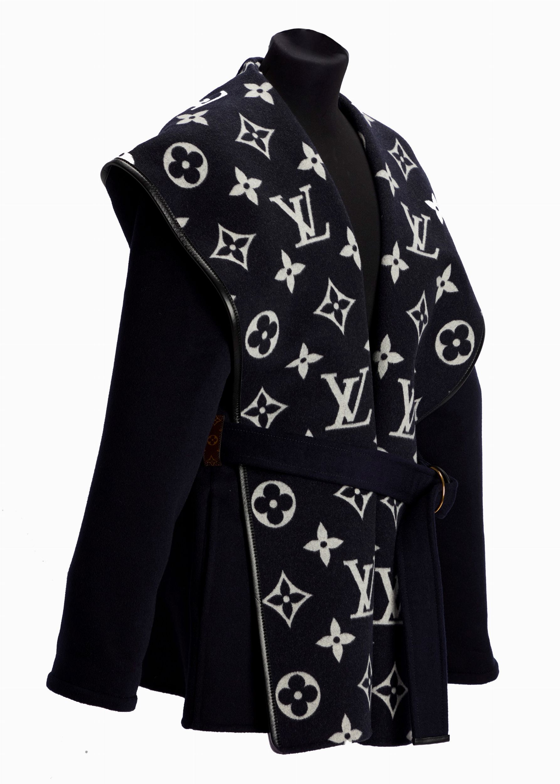 in lana color blu notte, con profili in pelle color nero, dettagli mongram, tg 40 francese