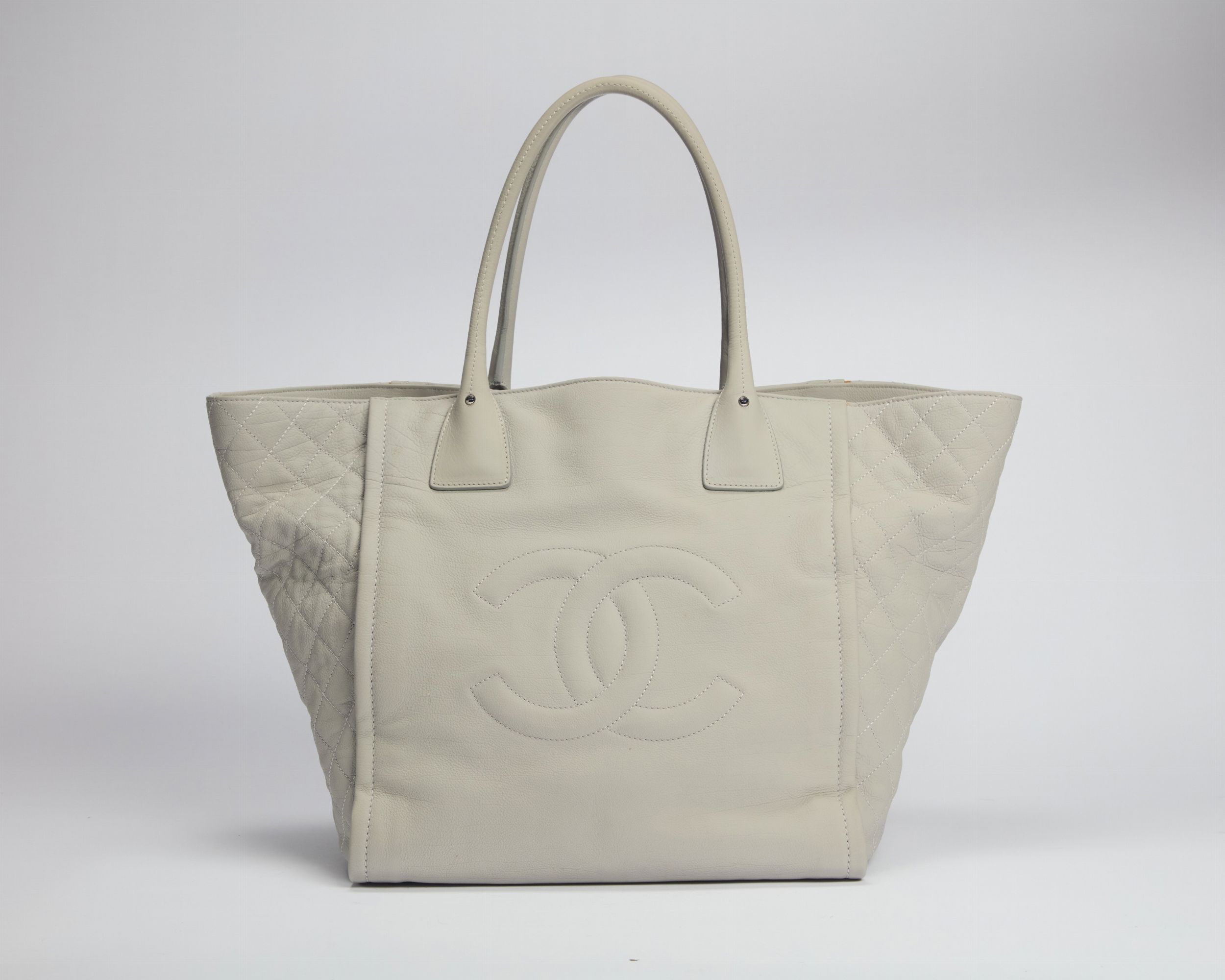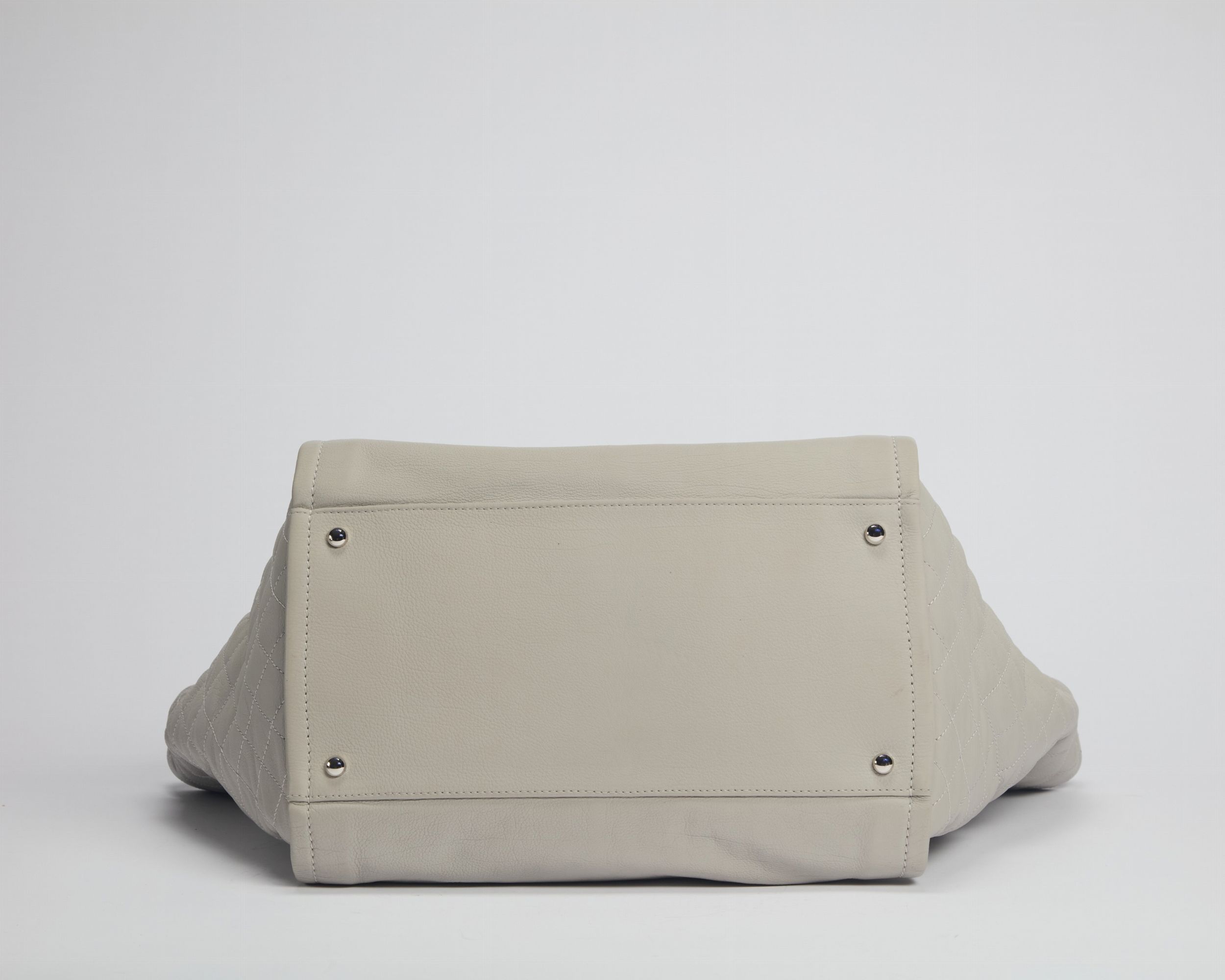 2009 in pelle color tortora, doppia tracolla a spalla, dettagli in metallo, interno in tessuto, cm 30 (base), con sacchetto (lievi difett