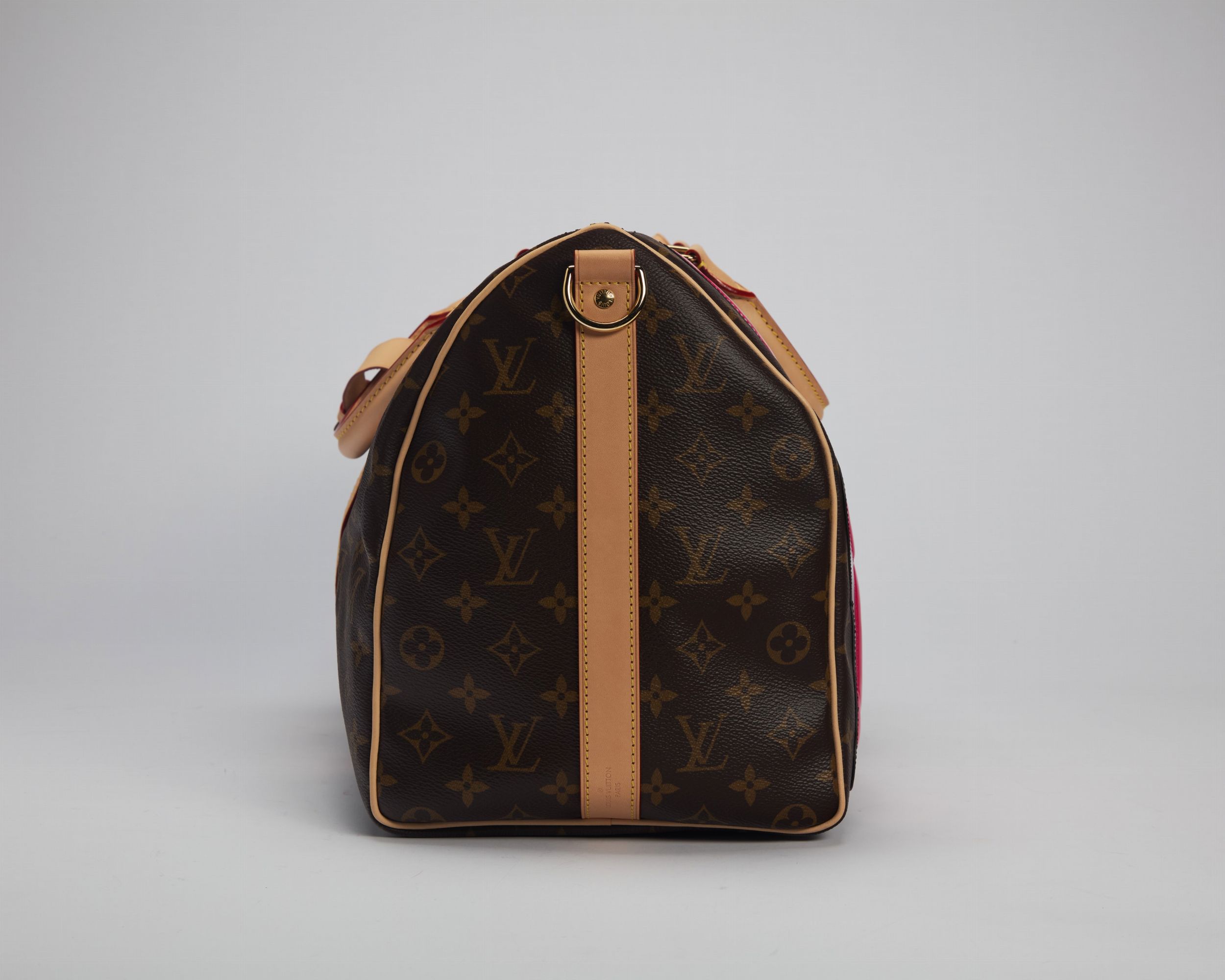 in tela monogram con coniglietto in pelle color rosa, doppi manici, dettagli in metallo dorato, con tracolla e sacchetto, cm 45. Collaborazione fra la Maison e l'artista cinese Sun Yitian