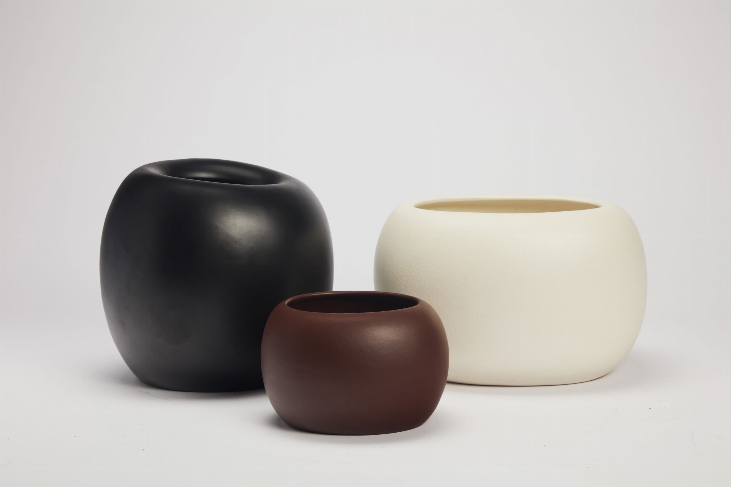 In ceramica smaltata mat color nero, panna e marrone, cm 20 x 22 x 19, cm 10 x 16 x 13, cm 17 x 26 x 21