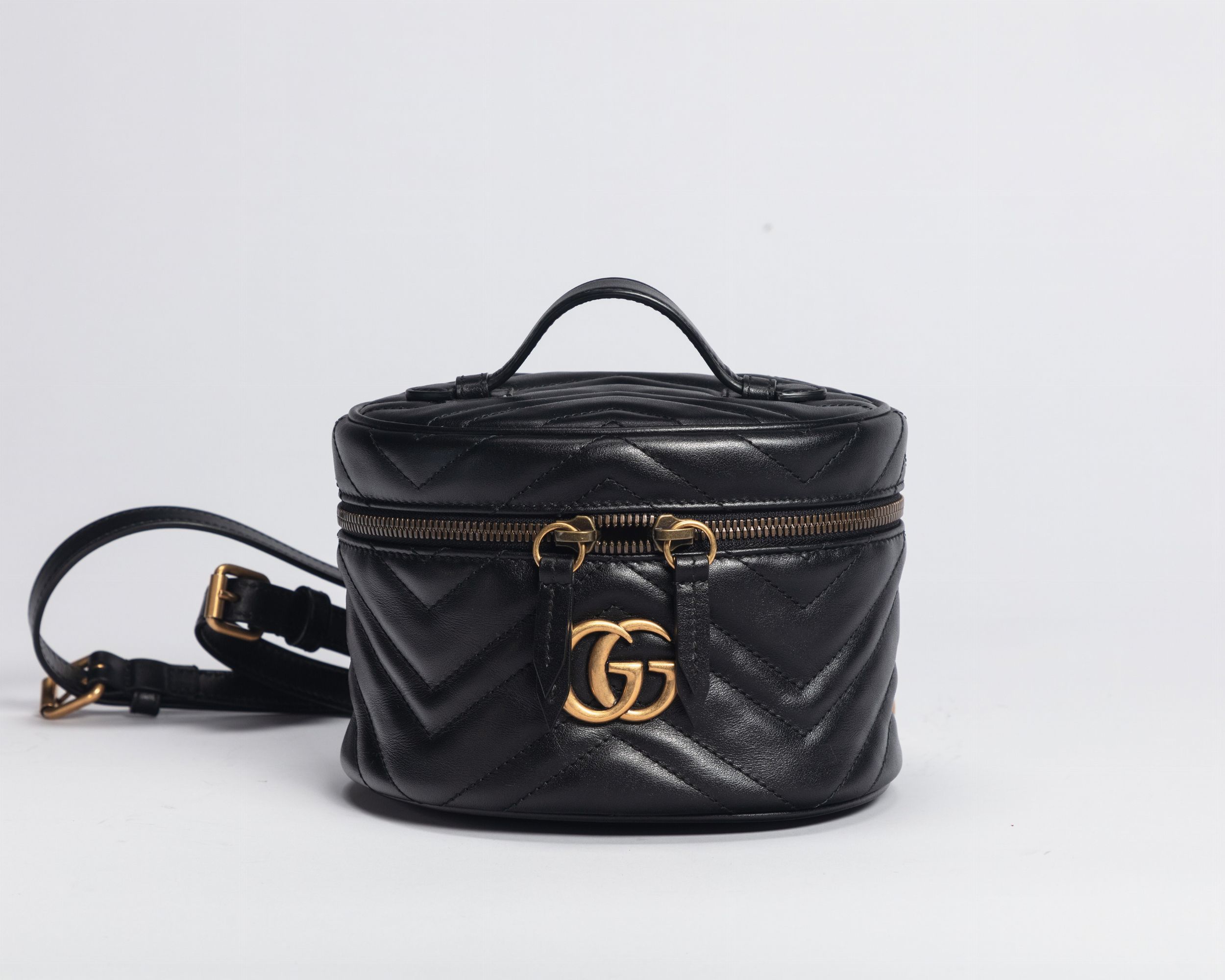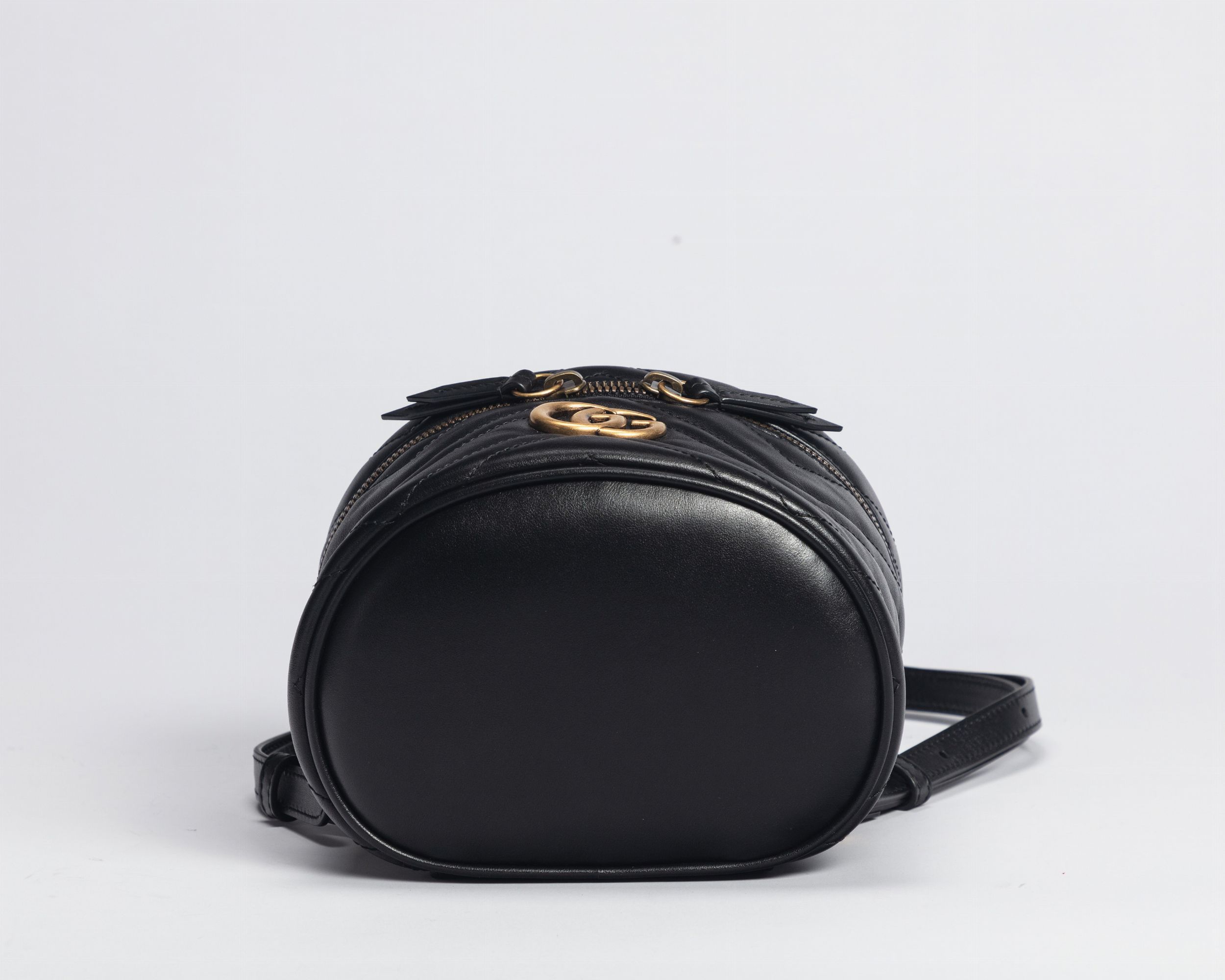 ovale in pelle color nero, con doppie tracolle regolabili, dettagli in metallo dorato satinato, cm 18, con sacchetto