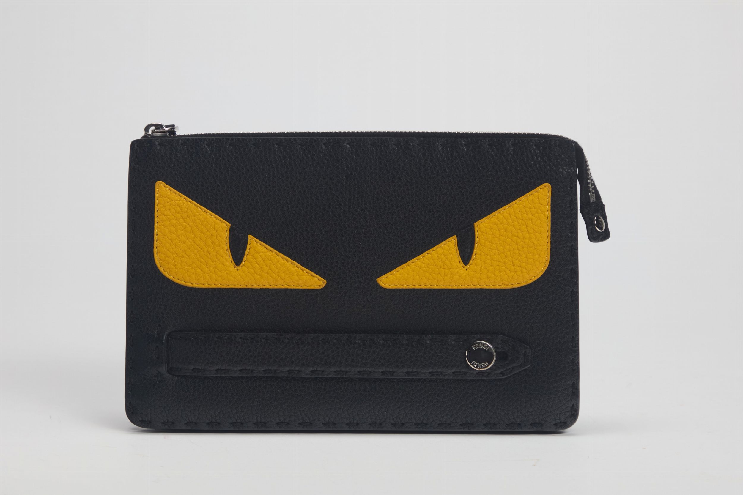 in pelle color nero, occhi in pelle color giallo, con sacchetto, cm 23,5 (nuova e mai usata)