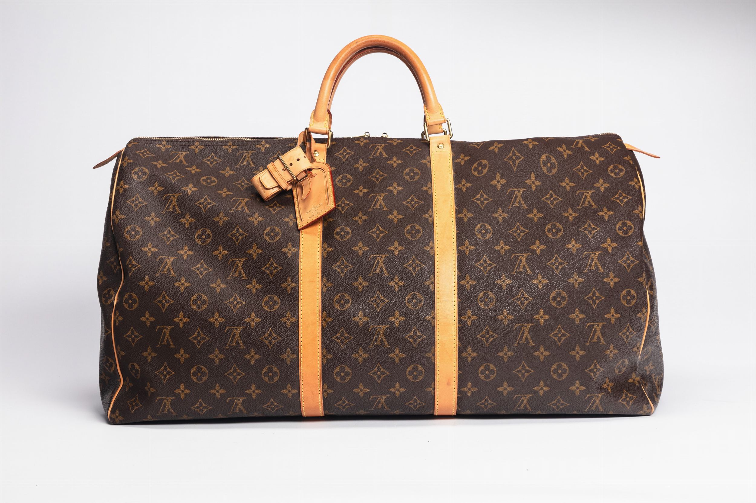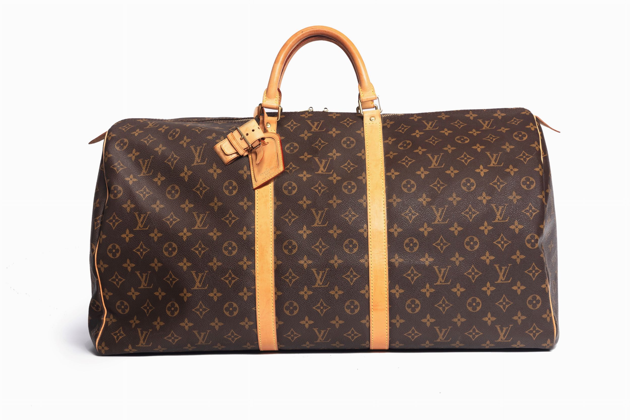 2000 in tela monogram, doppi manici, profili in bacchetta, dettagli in metallo dorato, cm 60 (lievi difetti)
