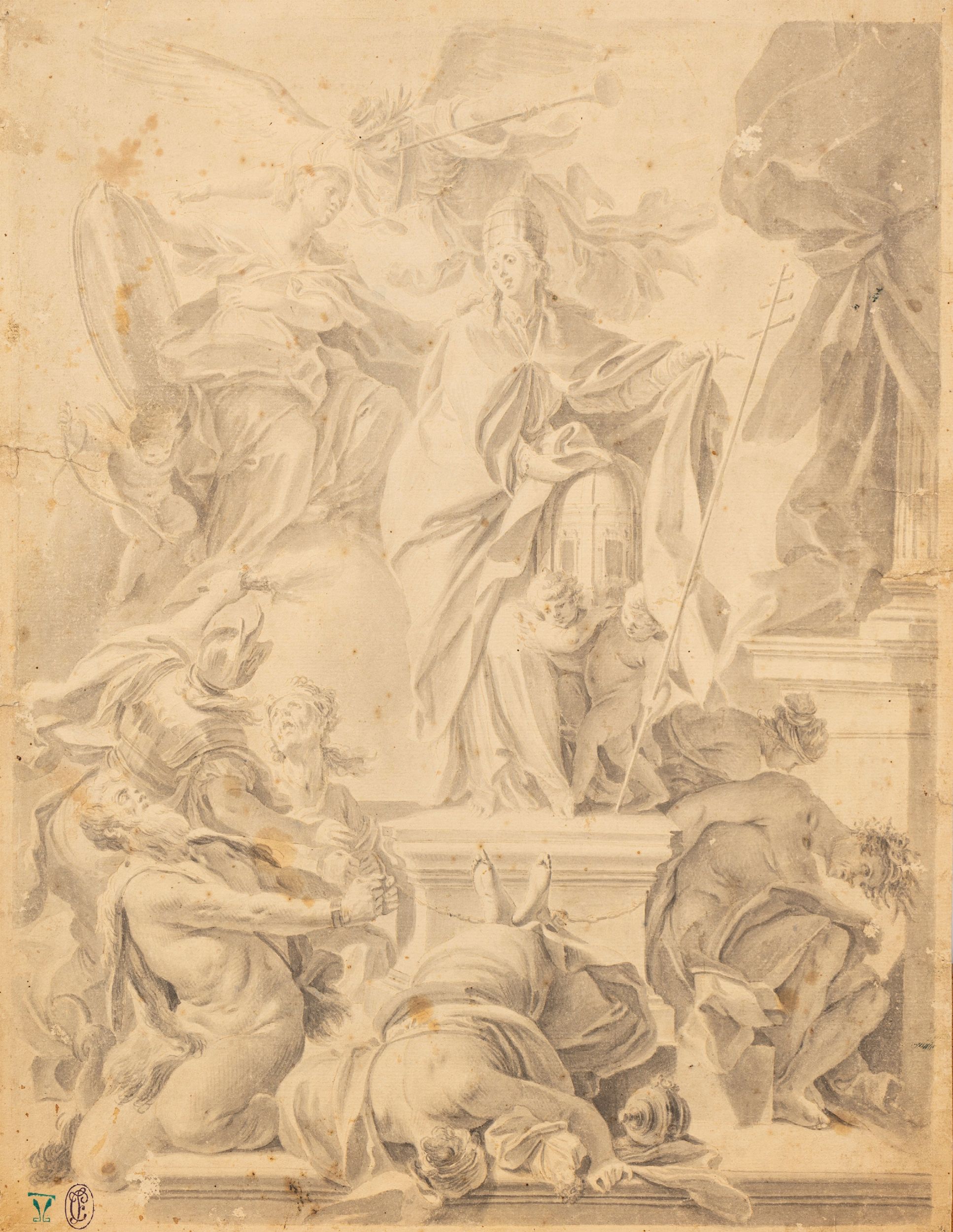 matita nera, penna e acquerello su carta marrone rosata (controfondata), mm 372 x 283 al recto , due marchi non identificati; al verso , marchio non identificato (Lugt n. 2715b) e numero d'inventario di collezione '144 E.P.' [Eleuterio Pagliano (Lugt n. 894a)]