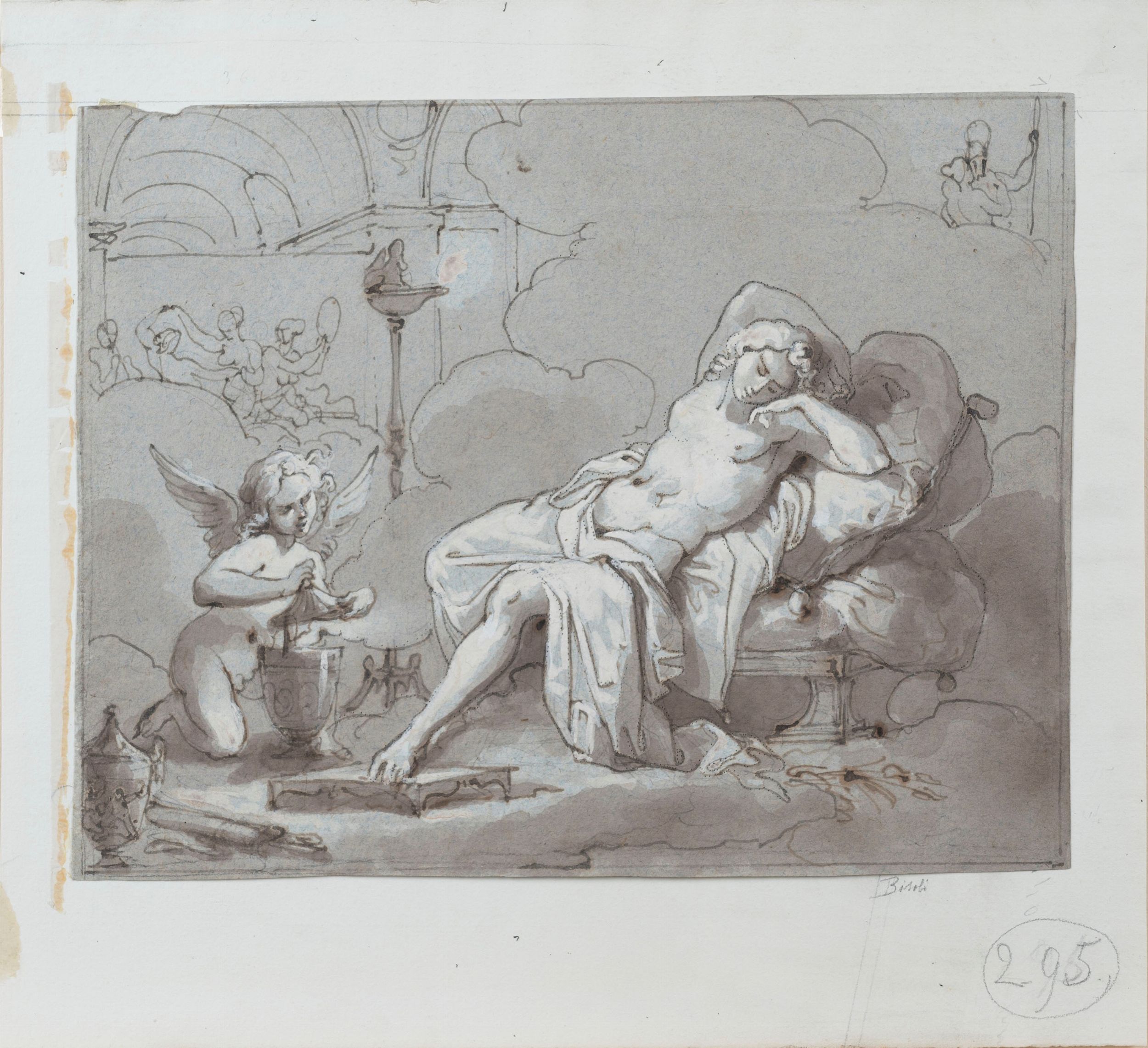 penna, inchiostro bruno, acquerello e biacca su carta, mm 220 x 285
