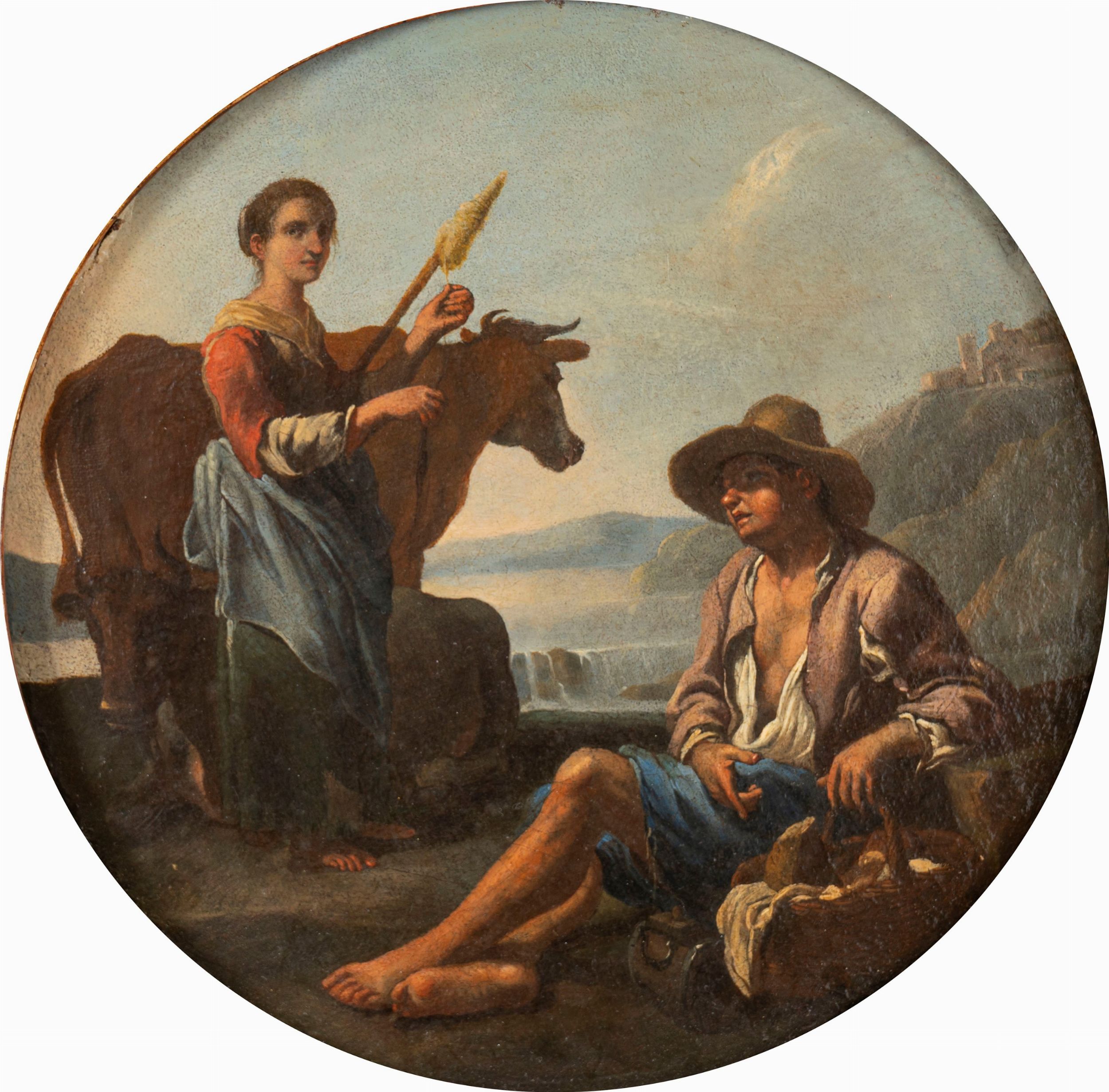 olio su tela applicata su tavola, in tondo, diametro cm 28