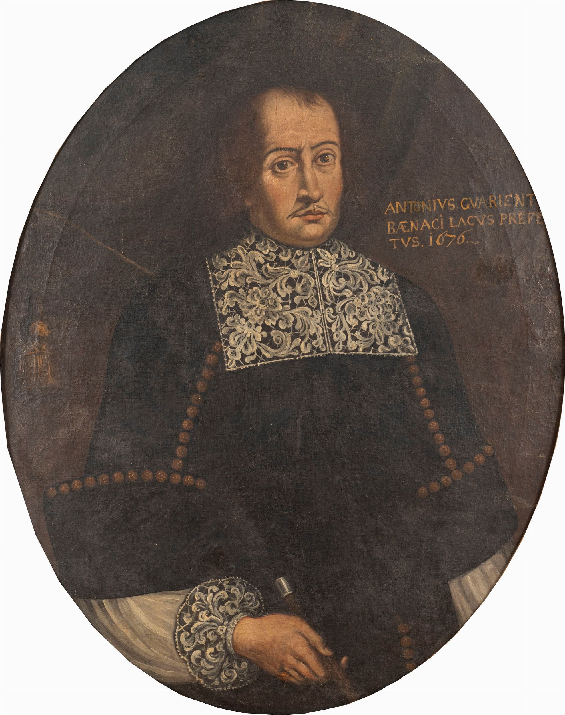 iscritto in alto a destra: ANTONIVS GUARIENT / BAENACI LACUS PREFEC / TUS 1676