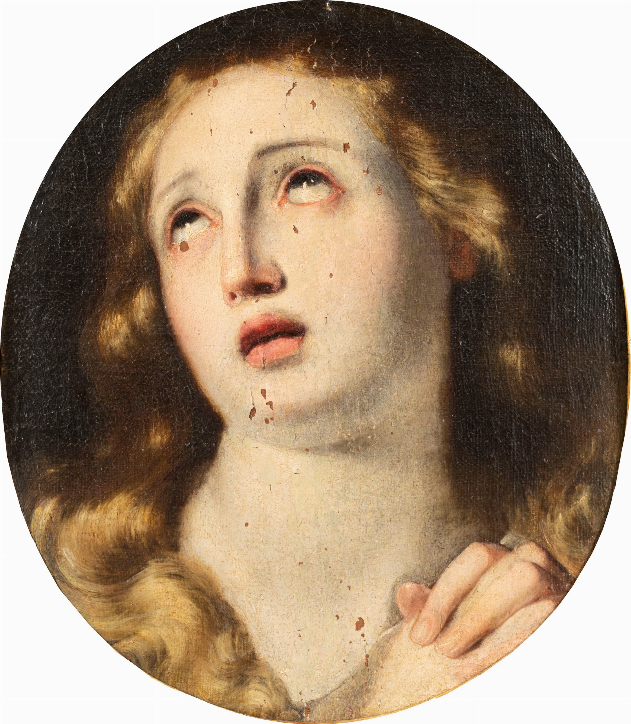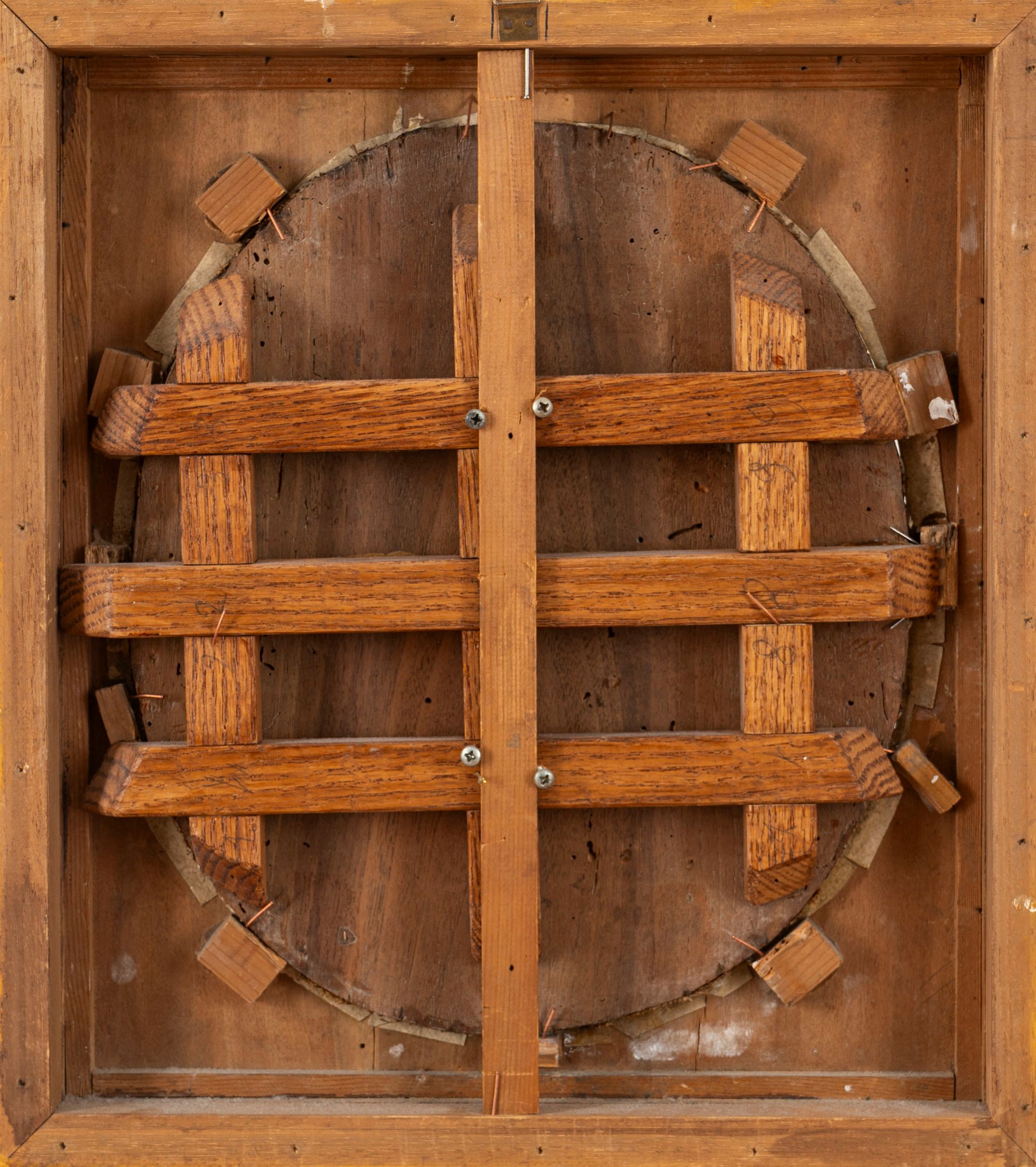 olio su tela ovale applicata a tavola, cm 34 x 29