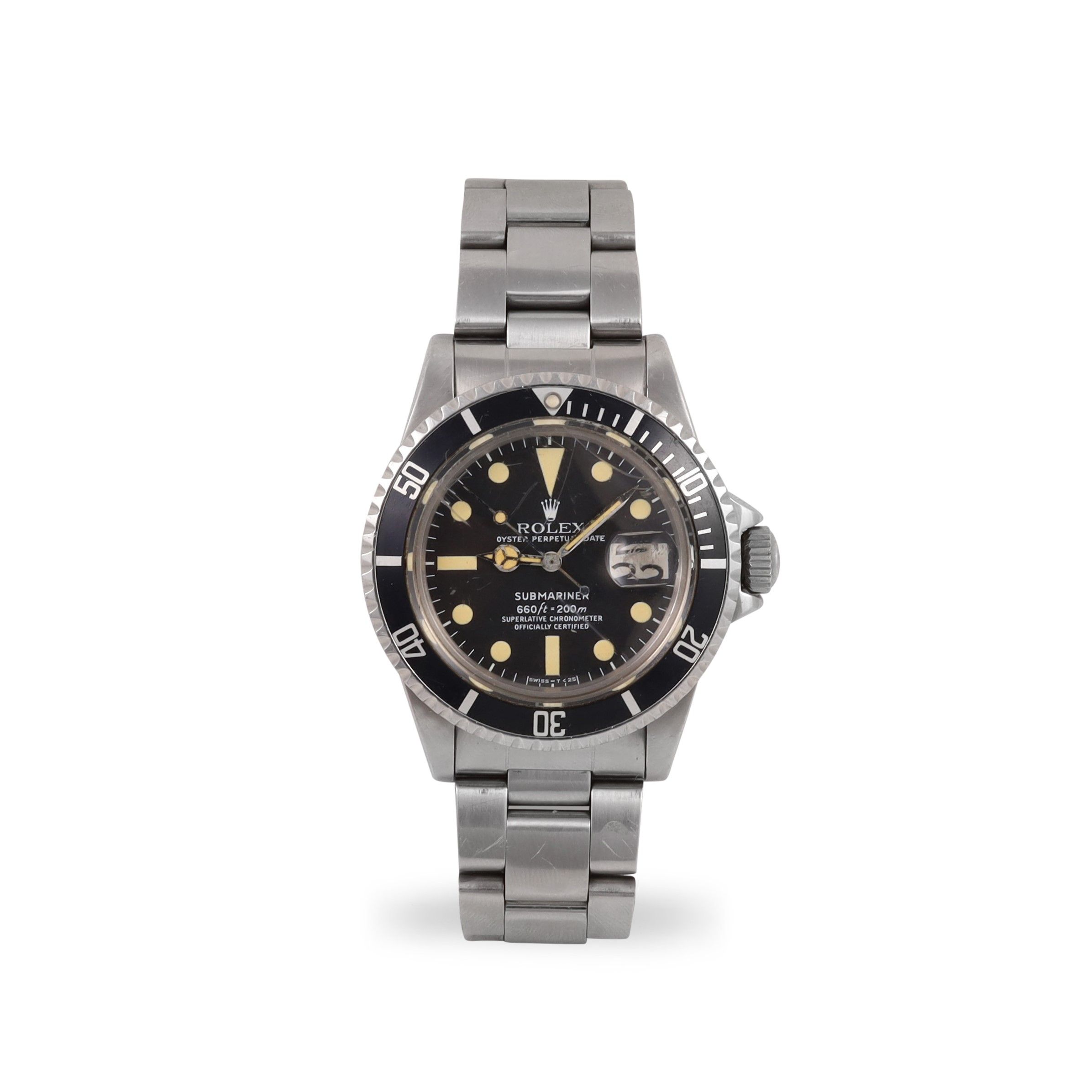Ref: 1680, 'Submariner' Cassa: in acciaio, No. 5864881, fondello a vite Quadrante: nero con indici luminosi geometrici, datario. Sfere Mercedes Movimento: automatico Bracciale: originale Oyster Ref. 93150, finali 580 Anno: 1978 DIAM: 39 mm Accessori: libretto e scatola Rolex