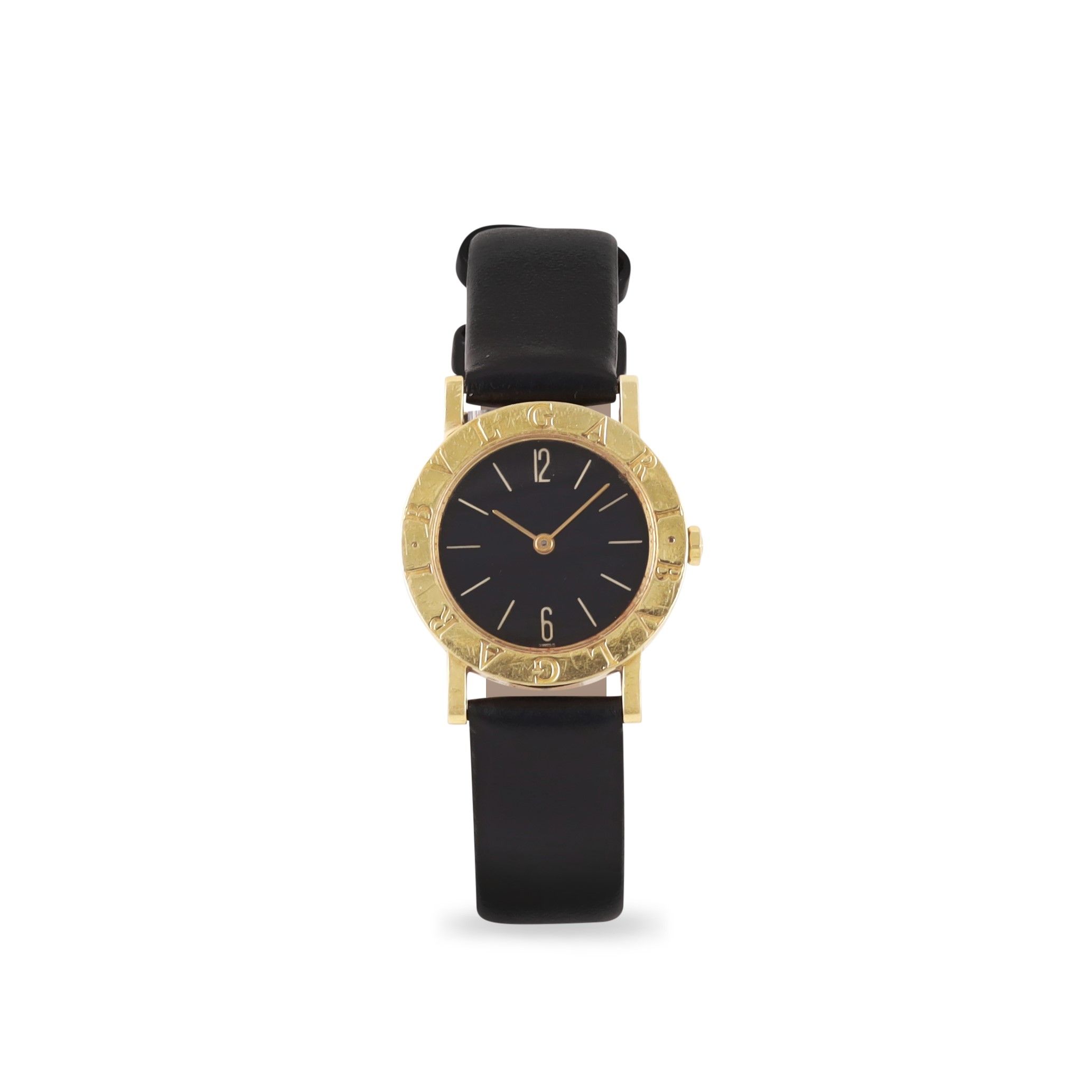 Ref: A5011 Cassa: in oro giallo 18K, fondello a pressione Quadrante: nero, indici a bastone e numeri Arabi. Sfere a bastone Movimento: al quarzo Cinturino: fibbia originale in oro Anno: 1980 circa DIAM: 26 mm