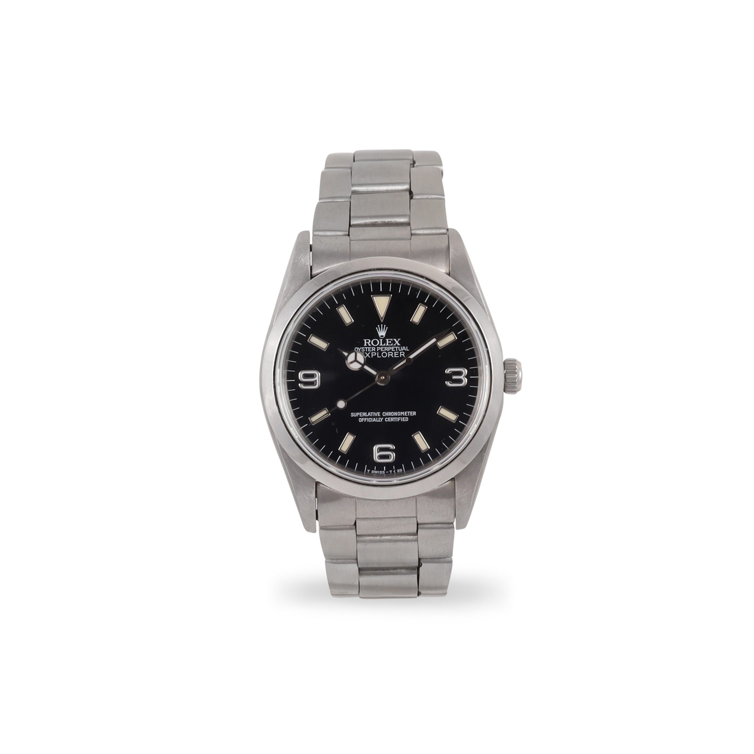 Ref: 14270, 'Explorer I' Cassa: in acciaio, No. X426657, fondello a vite. Vetro zaffiro Quadrante: nero, numeri Arabi e indici luminosi. Sfere luminose Mercedes Movimento: automatico, cal. 3000 Bracciale: originale Oyster con chiusura deployante Ref. 93150 Anno: 1991 DIAM: 36 mm Accessori: scatola Rolex