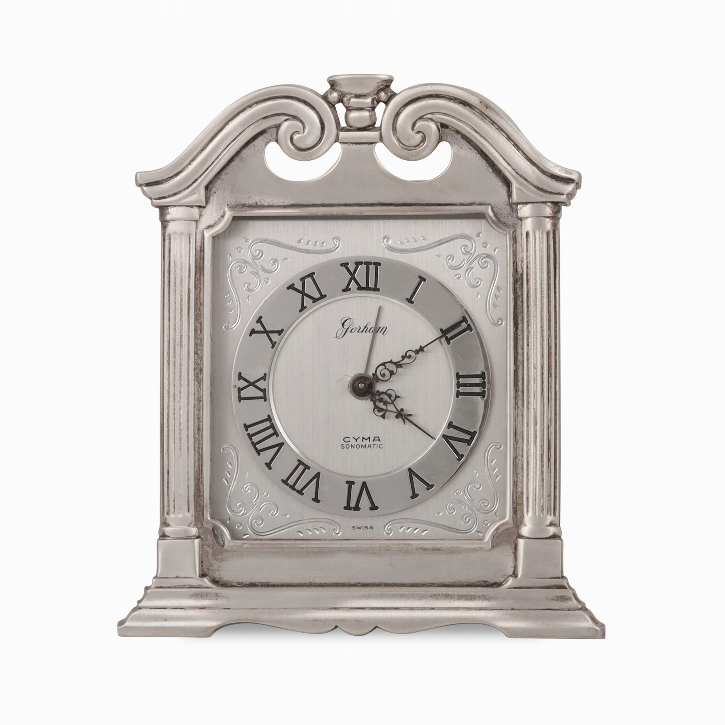 Cassa: in metallo e cornice in argento firmata Gorham Quadrante: in argento con numeri Romani Movimento: manuale Anno: 1960 circa DIM: 11 x 8 cm