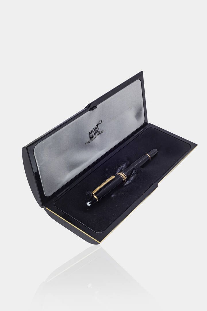 Evidenziatore marcato Montblanc modello Meisterstuck. Cappuccio e corpo in resina nera con finiture color oro giallo. Corredato di scatola.