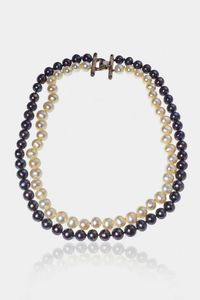 Lunghezza cm 50 ca composto da due fili perle acqua dolce uno nei toni del uno bianco e uno nei toni del nero [..]