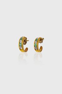 Peso gr 4 3 in oro giallo a semicerchio ovalizzato con smeraldi taglio rotondo e zirconi a decoro.
