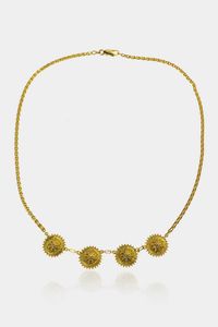 Peso gr 20 5 Lunghezza cm 44 in oro giallo con al centro quattro ciondoli rotondi a scudo