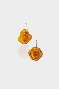 Peso gr 12 5 in oro giallo a monachella con due grandi rose in ambra (difetti).