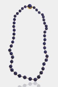 Peso gr 142 Lunghezza cm 80 composta da sfere di sodalite del diam. di mm 12. Chiusura in oro giallo con sodal [..]