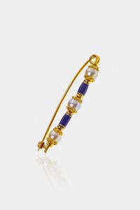 Peso gr 4 7 Cm 4 8 in oro giallo 14 Kt a barretta con perline e smalti blu