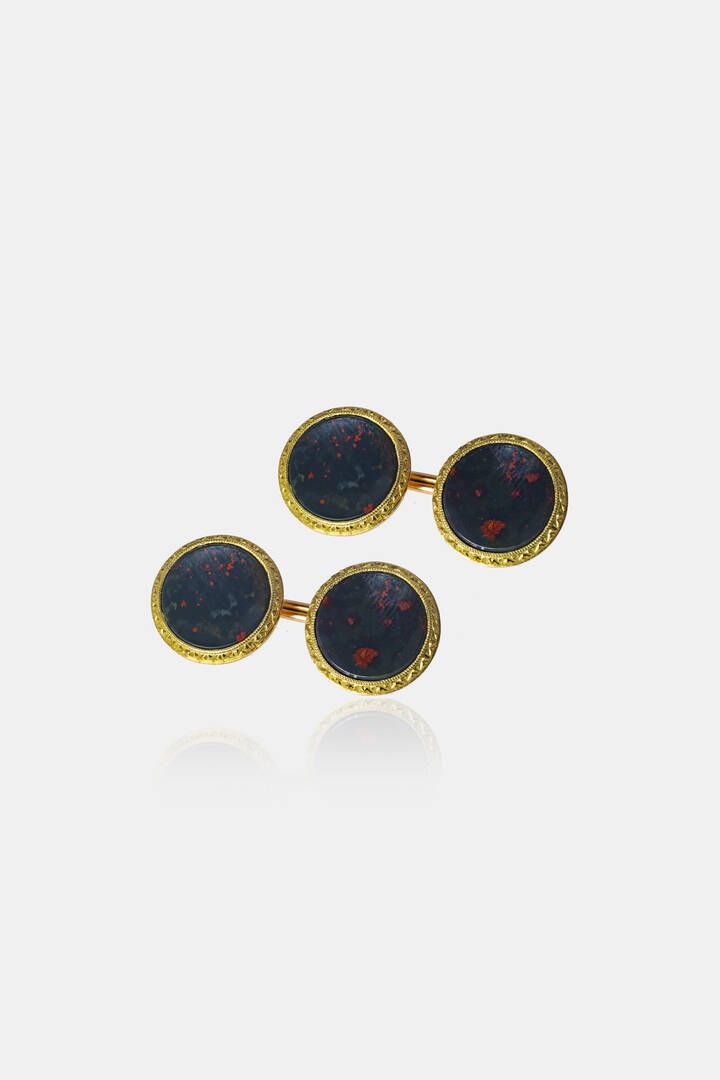in oro giallo e rosa di forma rotonda con diaspro verde anni '40