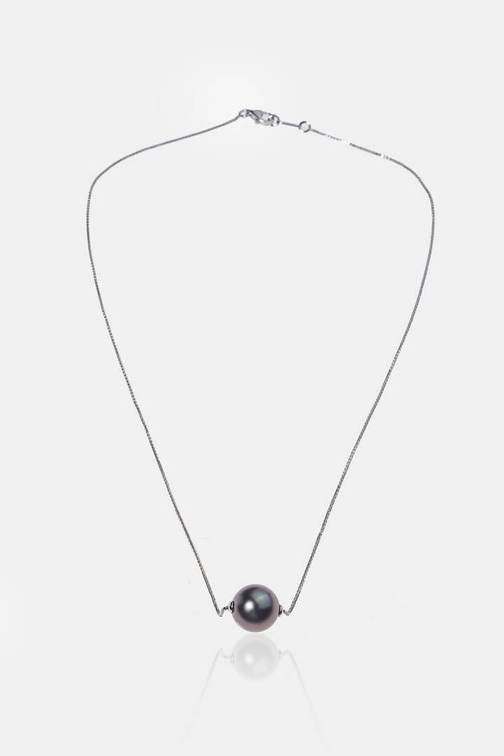 Lunghezza cm 41 Catena con ciondolo in oro bianco firmato Utopia con perla Tahiti passante del diam. di mm 11 ca.