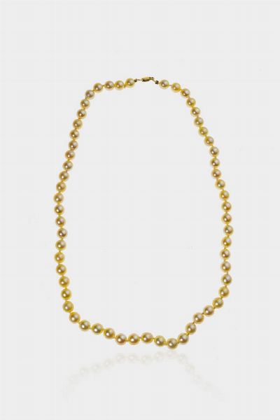 Lunghezza cm 44 composto da un filo di perle Akoya giapponesi del diam di mm 6 5-7. Chiusura in oro giallo a moschettone.