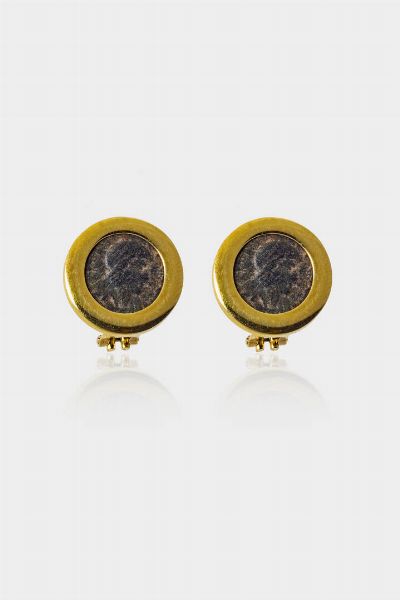 Peso gr 12 2 Diam. cm 1 9 in oro giallo di forma rotonda con al centro due monete [..]