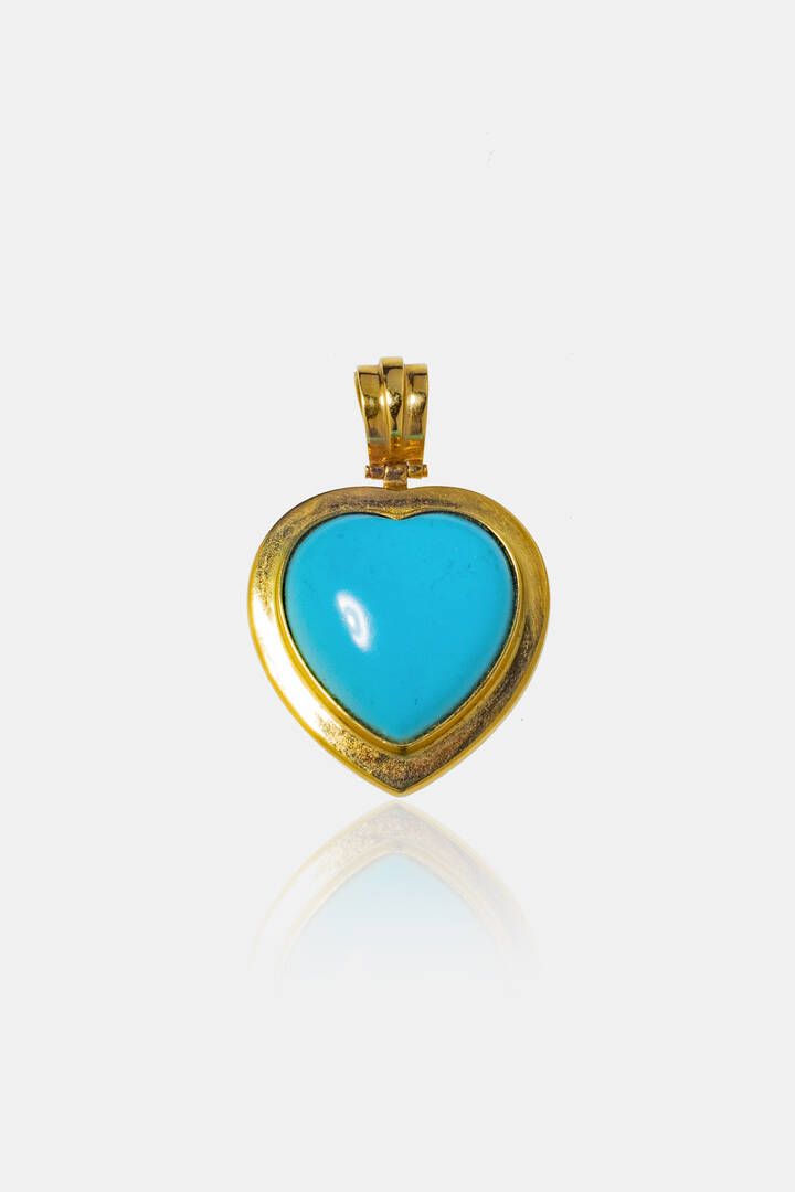 Peso gr 13 6 Cm 4x3 in oro giallo con cuore in pasta di turchese cabochon.