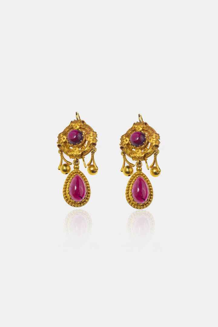 Peso gr 13 9 Lunghezza cm 4 in oro giallo XIX secolo ad amo con granati taglio a goccia e rotondo cabochon