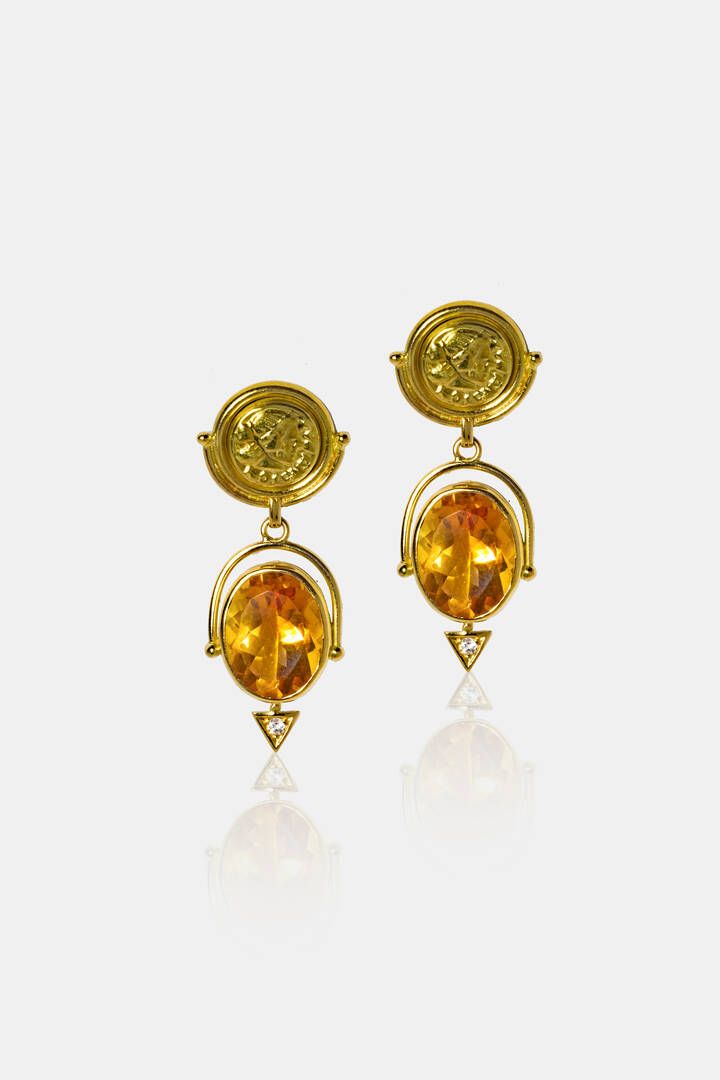 Peso gr 13 Lunghezza cm 4 pendenti in oro giallo firmati Loto Preziosi anni '90 con ovali in quarzo citrino