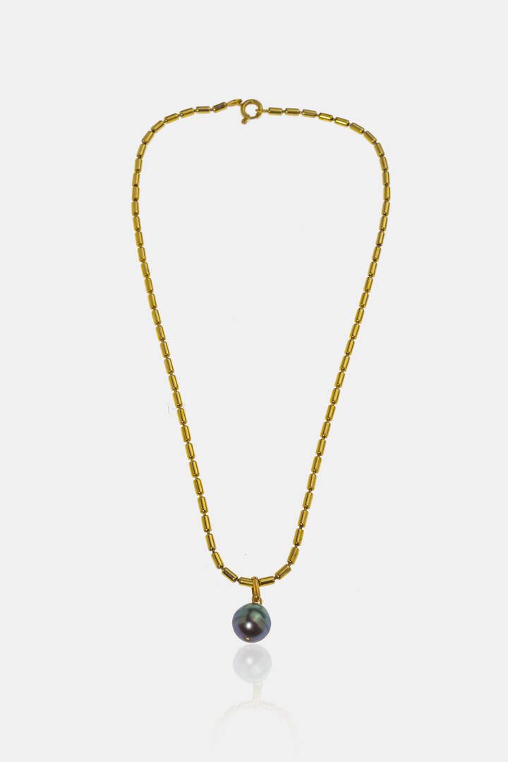 Peso gr 14 7 in oro giallo a segmenti recante perla Tahiti del diam. di mm 10 ca.