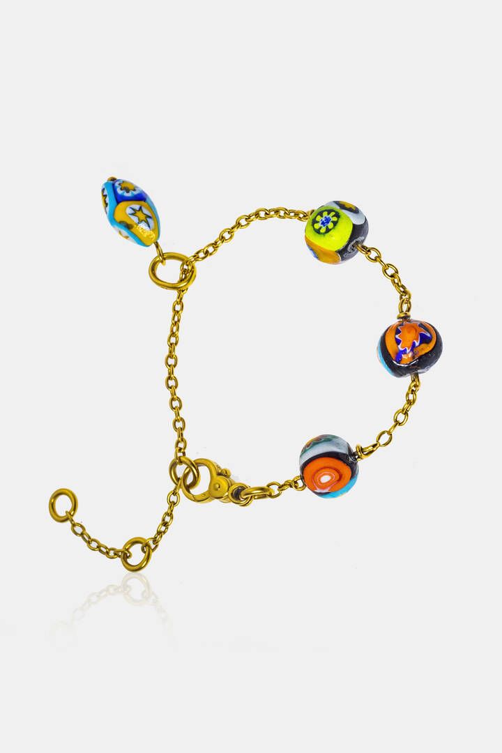 Peso gr 15 1 Lunghezza da cm 16 a 20 Bracciale in oro giallo firmato Pomellato con sfere in vetro di murrina.