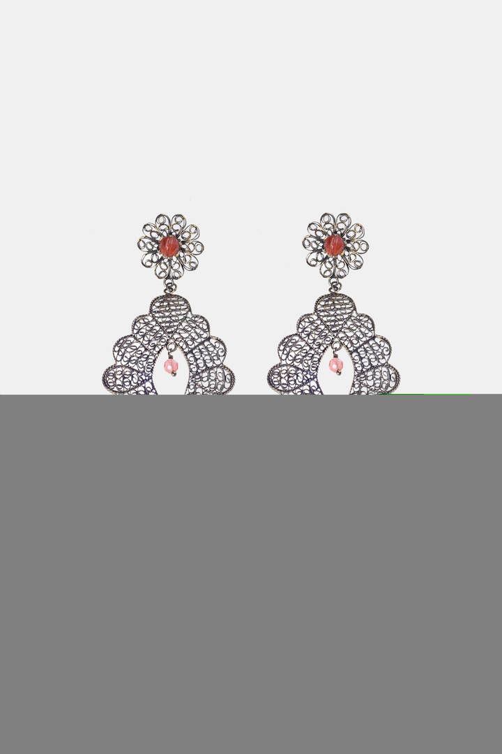 Peso gr 17 8 Lunghezza cm 8 5 Coppia di orecchini in argento 925/1000 di forma polilobata lavorati a filigrana con quarzi rosa pendenti