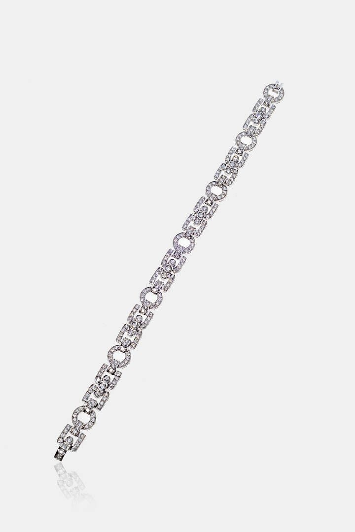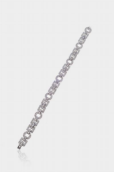 Peso gr 19 Lunghezza cm 17 5 in oro bianco composto da elementi geometrici alternati in pavé di diamanti per totali ct 2 80 ca probabile colore G purezza VVS