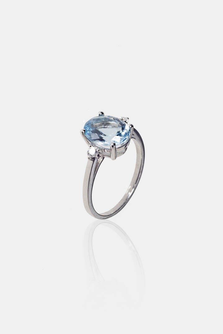 Peso gr 2 5 Misura 14 (54) in oro bianco con al centro acquamarina taglio ottagonale [..]