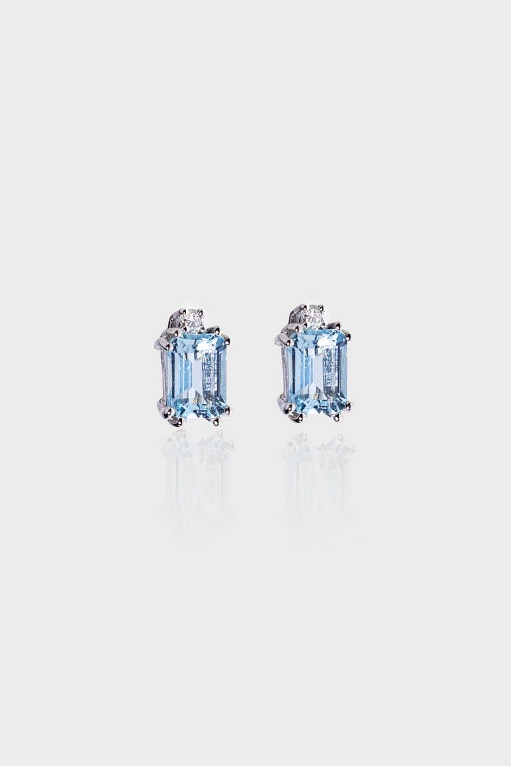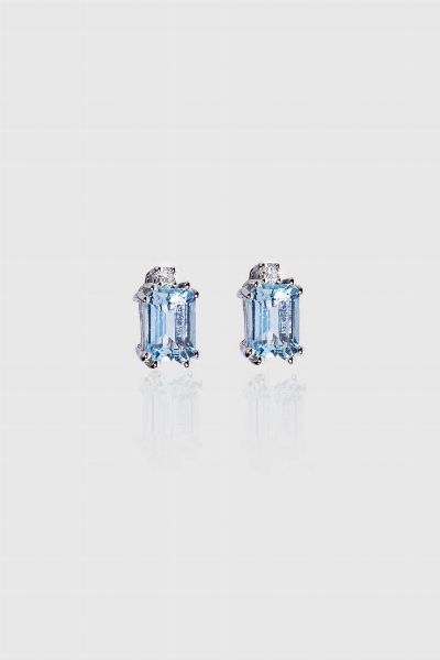 Peso gr 2 7 in oro bianco a lobo con due acquamarine taglio rettangolare sormontate da due diamanti taglio brillante per totali ct 0 08 ca probabile colore G-H purezza IF-VVS