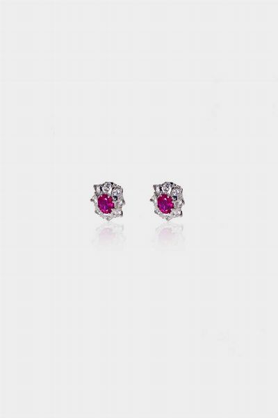 Peso gr 2 7 in oro bianco a lobo con due rubini taglio ovale per totali ct 0 42 e diamanti taglio brillante per totali ct 0 28 ca probabile colore G-H purezza VVS