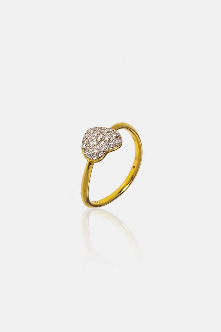 Peso gr 2 7 Misura 14 (54) in oro giallo e bianco linea Dodo con cuore in pavé di diamanti taglio brillante per totali ct 0 30 ca