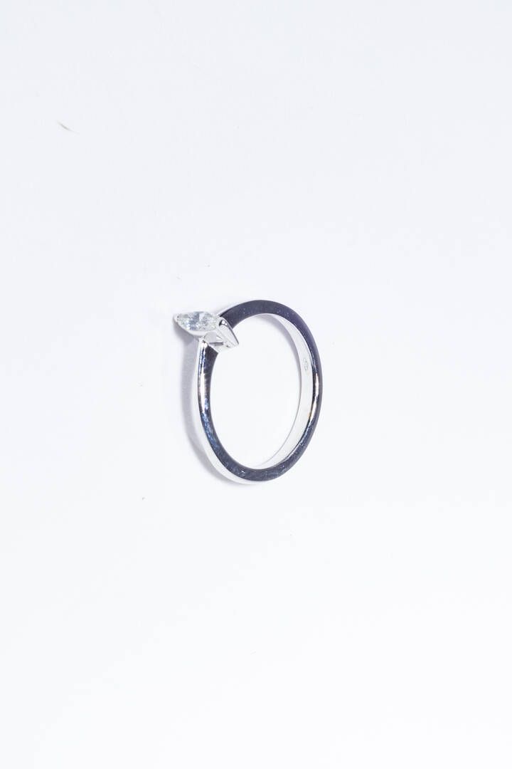 Peso gr 2 9 Misura 13 (53) in oro bianco con al centro diamante taglio navette di ct 0 25 ca colore G purezza VS1.