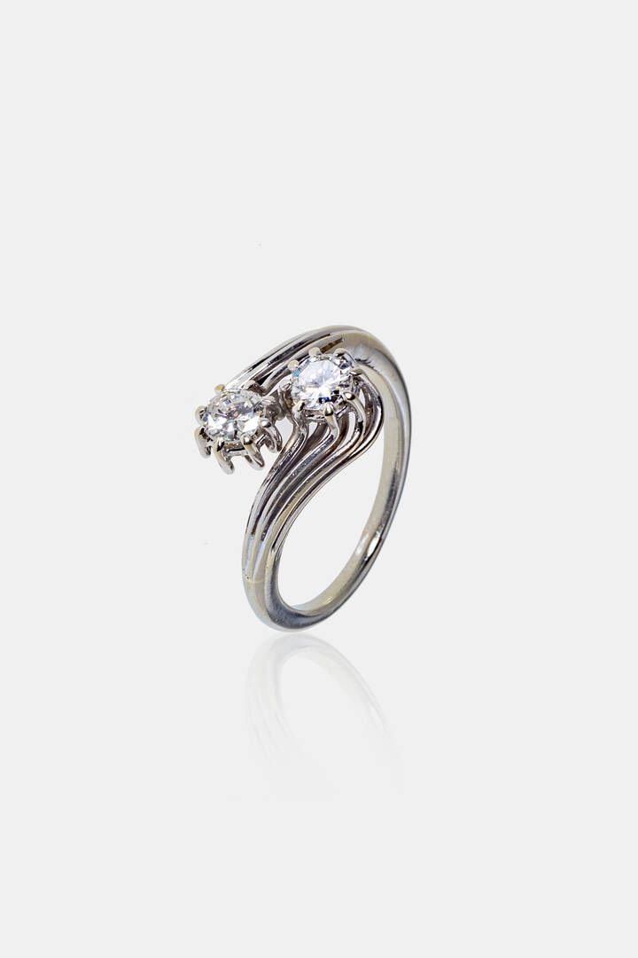 Peso gr 3 0 Misura 9 (49) in oro bianco modello contrarié anni '50 con due diamanti taglio brillante per totali ct 0 50 ca