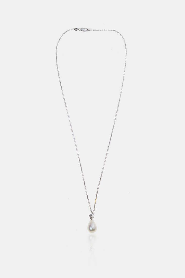 Peso gr 3 4 in oro bianco con perla di acqua dolce a pera nei toni del bianco sormontata da un diamante taglio carré di ct 0 05 ca