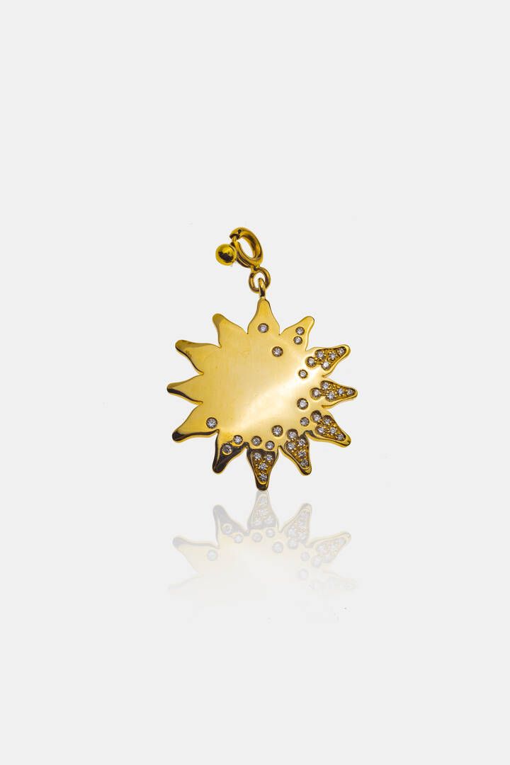 Peso gr 4 1 Ciondolo in oro giallo firmato Pasquale Bruni modello Le Monde a forma di sole con diamanti taglio brillante per totali ct 0 14 ca. Corredato di cartellino.