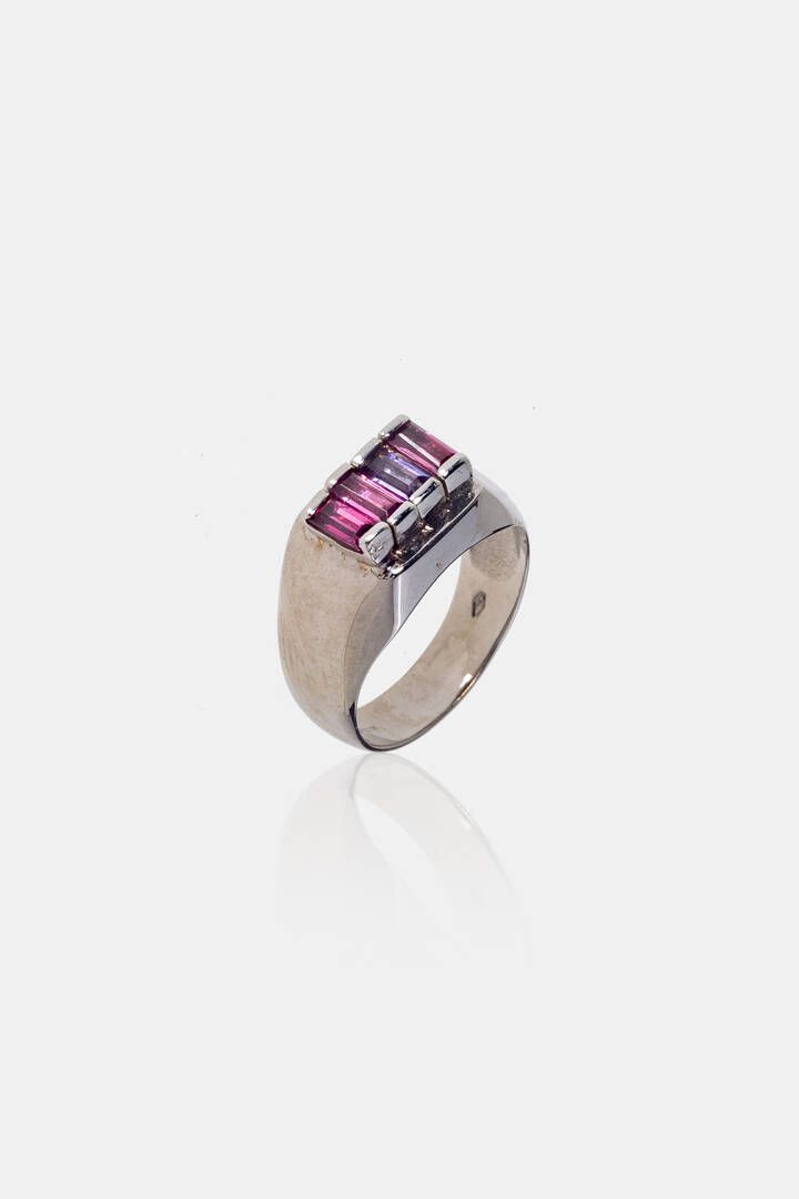 Peso gr 4 2 Misura 8 (48) in oro bianco sommità con iolite tormaline rosa taglio baguette