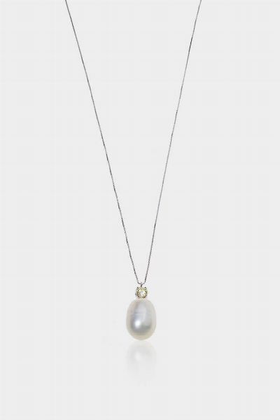 Peso gr 5 1 in oro bianco con perla australiana ovale del diam. di 11 7x16 mm e un diamante taglio brillante di ct 0 30 ca