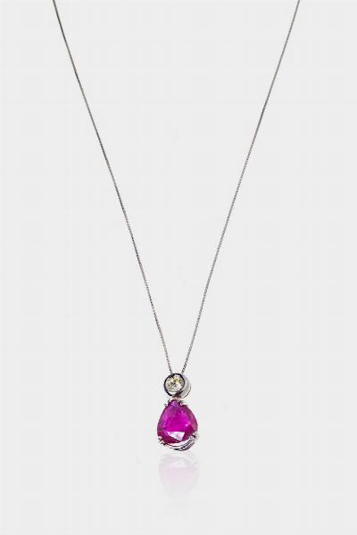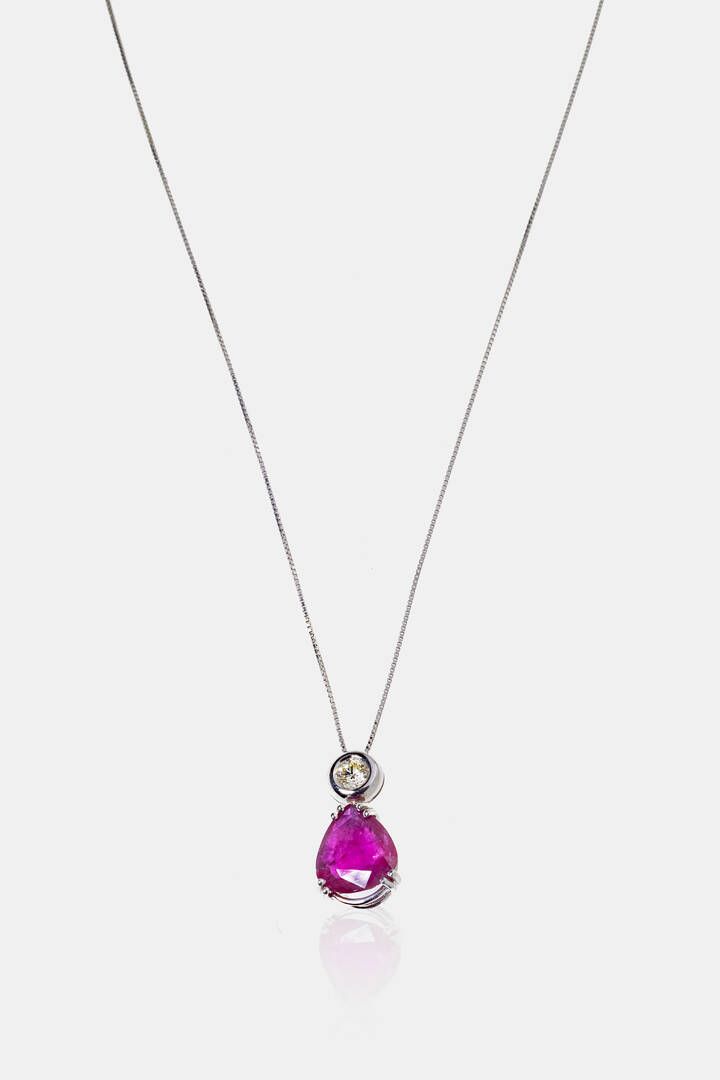 Peso gr 5 2 in oro bianco con un rubino taglio a goccia di ct 4 0 ca sormontato da un diamante taglio brillante di ct 0 30 ca