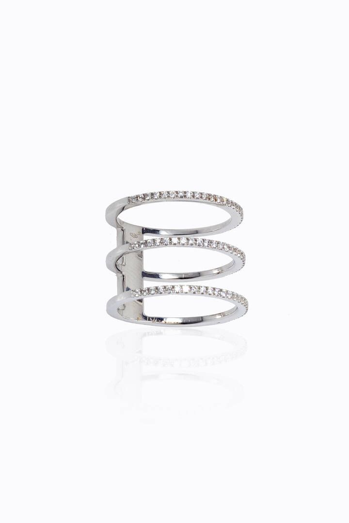 Peso gr 6 1 Misura 12 (52) in oro bianco sommità con tre file orizzontali in diamanti [..]