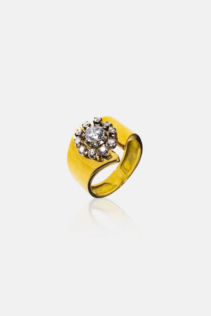 Peso gr 7 4 Misura 19 (59) in oro giallo sommità con al centro fiore in diamanti taglio brillante per totali ct 0 80 ca