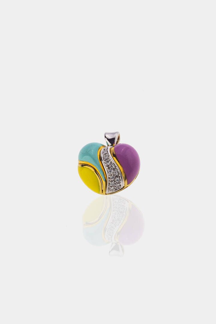 Peso gr 7 9 in oro bianco a forma di cuore con smalti policromi e piccoli diamanti [..]