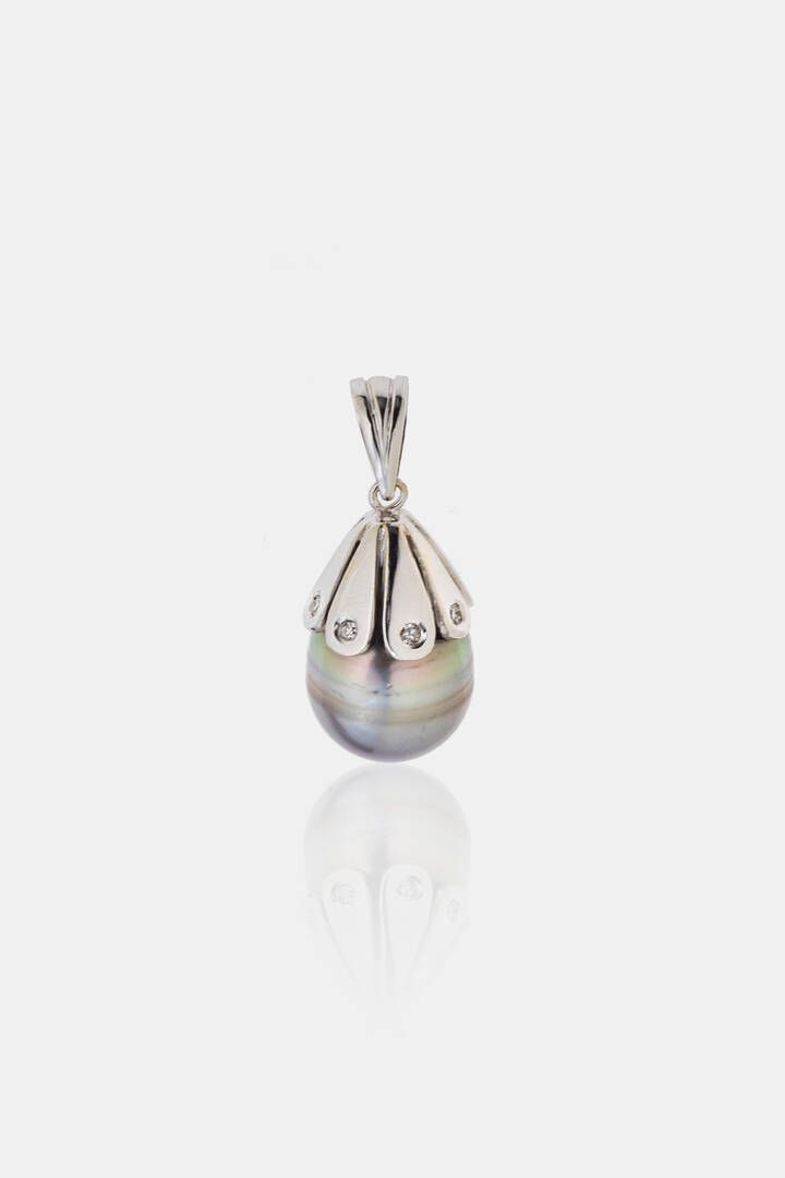 Peso gr 8 2 in oro bianco con perla Tahiti ovale del diam di mm 13 6 e diamanti [..]