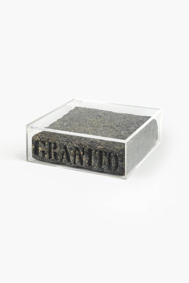26 5x25 5 poliuretano espanso 27 2x27 2 teca in plexiglass pezzo unico Opera intitolata sul fronte firmata sul lato inferiore Piero Gilardi in collaborazione con Franco Mello Collezione privata di Franco Mello Difetti